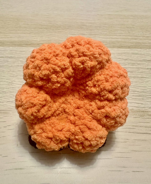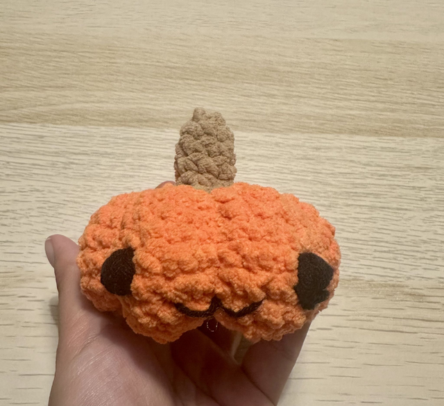 Peluche Citrouille crochetée à la main, toute mignonne avec ses grands yeux, son sourire chaleureux et ses formes rondes. Une petite décoration douce et pleine de charme.